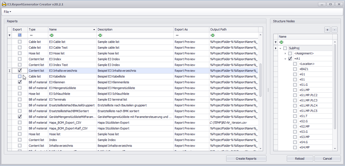 The E3.ReportGenerator is a free tool for creating customised reports from E3.series projects in a few simple steps. These reports can be configured according to various parameters and exported in various formats. The tool requires no licence and can be launched directly from within E3.series.
