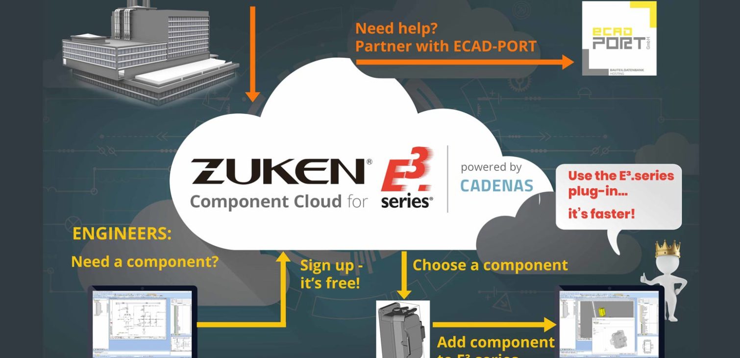 Zuken provides an optional free plugin application for E3.series customers that allows the user to access the Zuken Component Cloud directly from the E3.series user interface. Components loaded from the cloud will be automatically transferred to the component database without manual intervention.